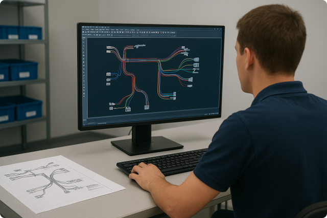 Ons machinepark bevat onder meer Komax, Telsonic, Gerard Romtsch en Schleuniger machines voor het knippen en strippen van kabels, het krimpen van contacten en aanbrengen van splices. Ook hier staat kwaliteit weer voorop! Zo zijn onze machines uitgerust met automatische krimpkracht bewaking en wordt ook de krimp hoogte gemeten om een optimale krimp te realiseren.